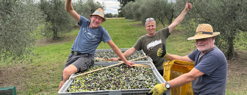 Die Ernte 2025 ist Gschichte. Die Anspannung ist vorbei. Esti und ich sind immer wieder von neuem gerührt und extrem dankbar darüber, wie viele aus Familie und Freundeskreis unseren Traum des Podere L'Immacolata mitträumen und uns so tatkräftig unterstützen. Grazie mille Ragazzi, ihr seid Teil der Edizione Quatro. Ohne euch wäre es schlicht nicht möglich. Beide Wochen sind unvergesslich, vor allem auch in menschlicher Hinsicht. Es war von A-Z eine super Zeit mit euch. Ein inniges Grazie auch an die Mutter Natur, die uns dieses Jahr reich beschenkte. Vom biologischen Olivenöl extra vergine L'Immacolata sind nun ca. 1'000 Liter im Tank. Sie werden demnächst gefiltert und abgefüllt. Etwas mehr als die Hälfte des Öls ist bereits vorbestellt. Alle Infos dazu und das Bestellformular auf www.l-immacolata.ch. Lieferbereit Mitte Dezember.